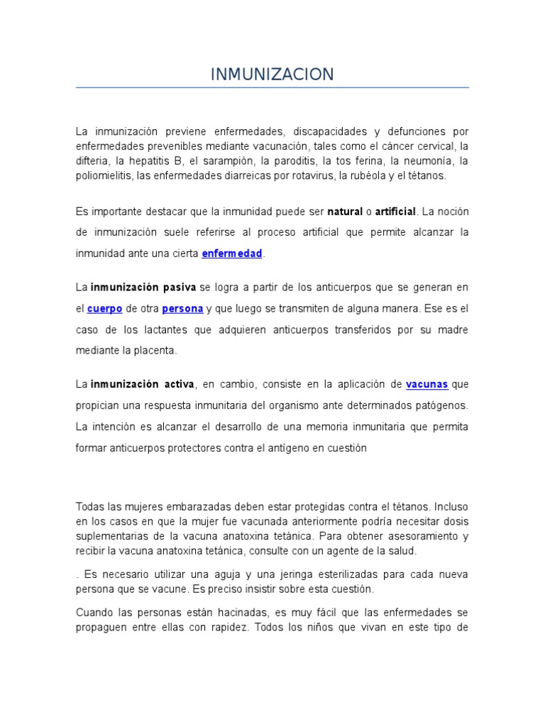 CONTENIDO: Definicin de inmunizacin tipos de vacunas y para que sirve cada una igual que la