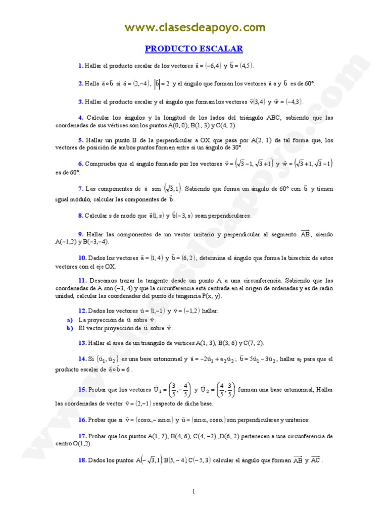 3. Hallar el producto escalar y el ngulo que forman los vectores v(3,4 ) y w = (4,3) .