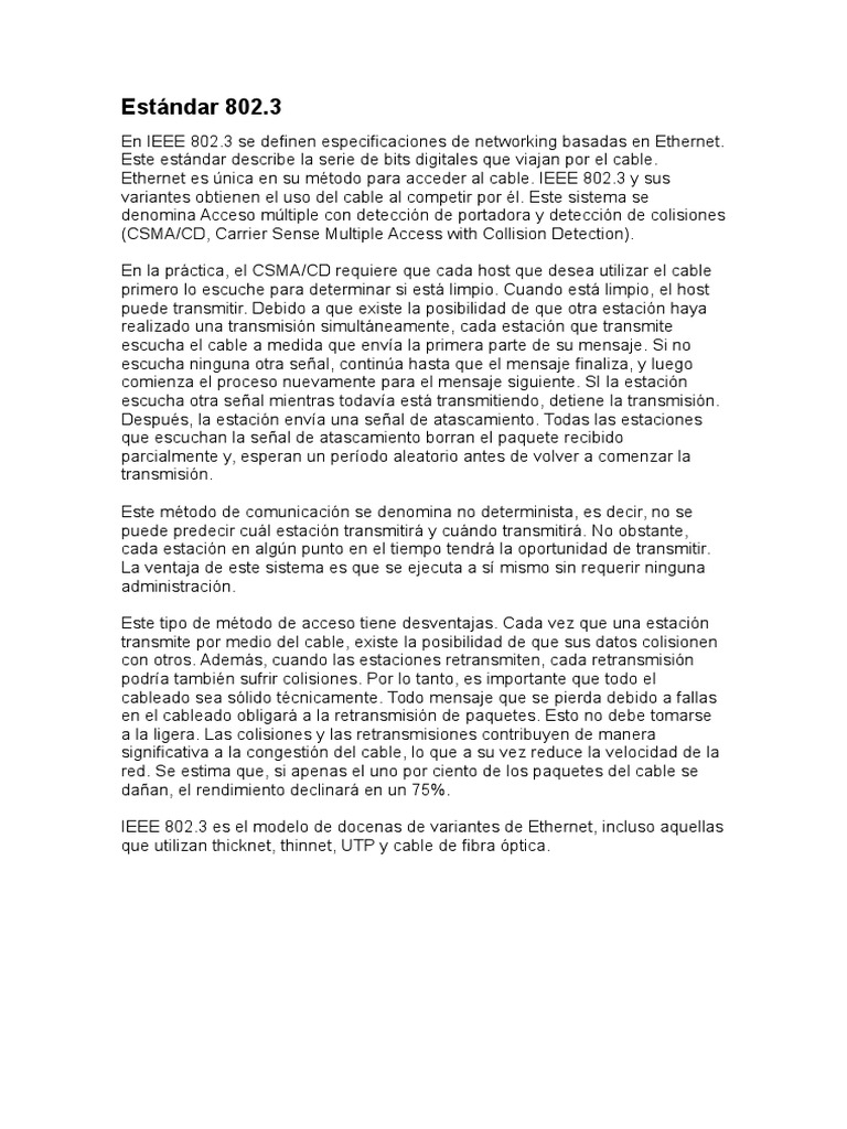 En este trabajo estaremos hablado sobres los estndares 802.3 y 802.11, sus