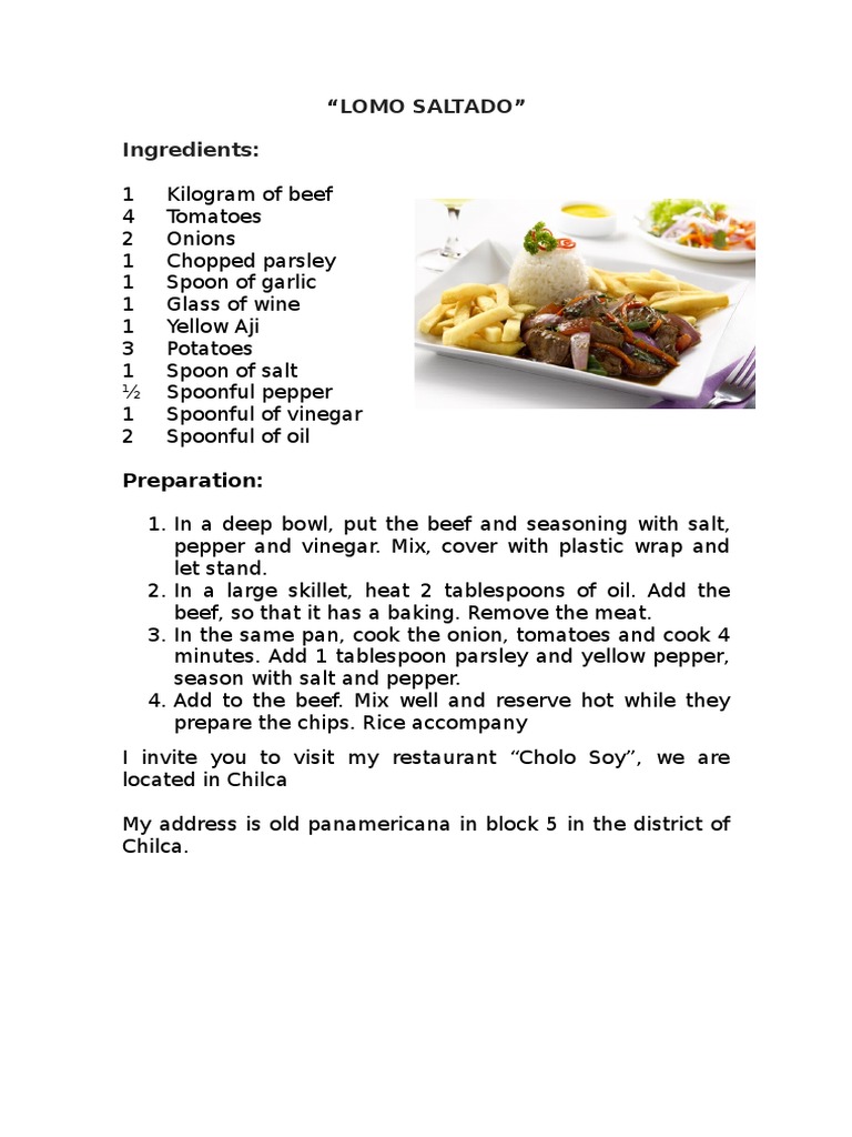 Te invito a visitar mi restaurante "Cholo Soy", estamos