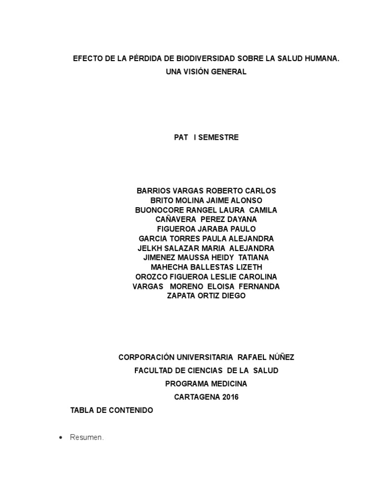 la perdida de la biodiversidad en la salud del ser humano, apoyando y aportando