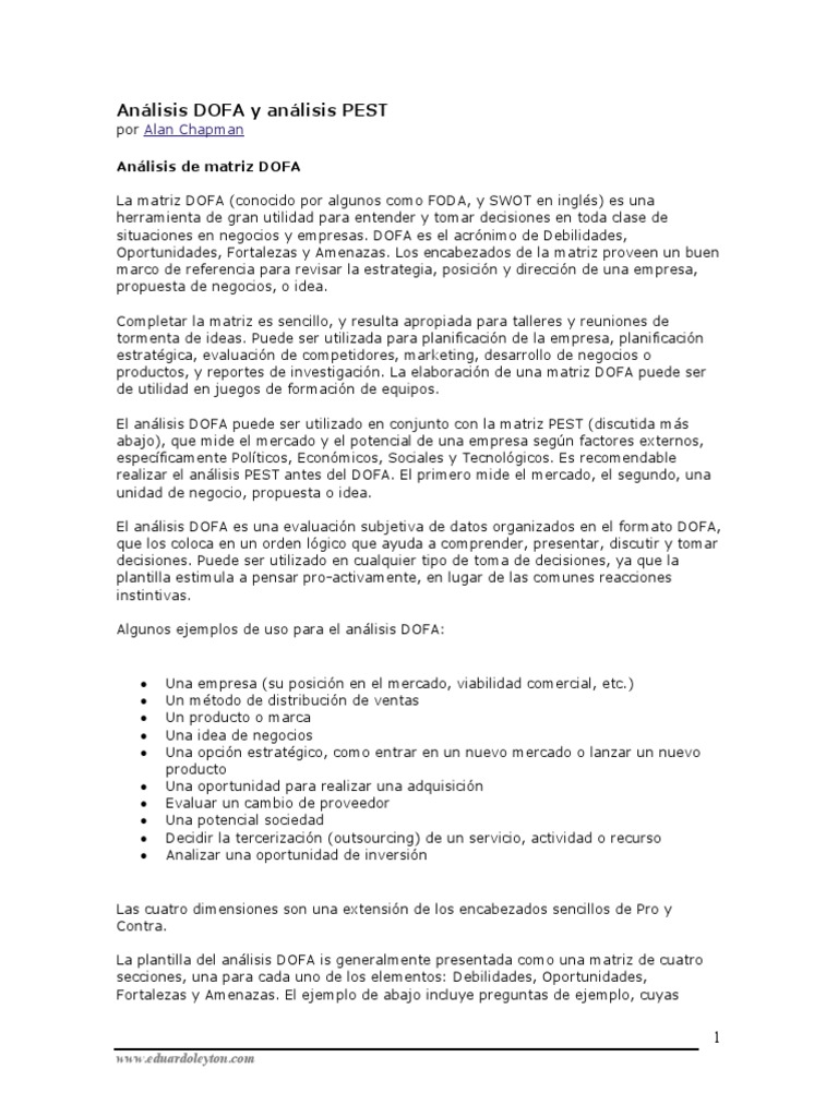Anlisis DOFA y anlisis PEST