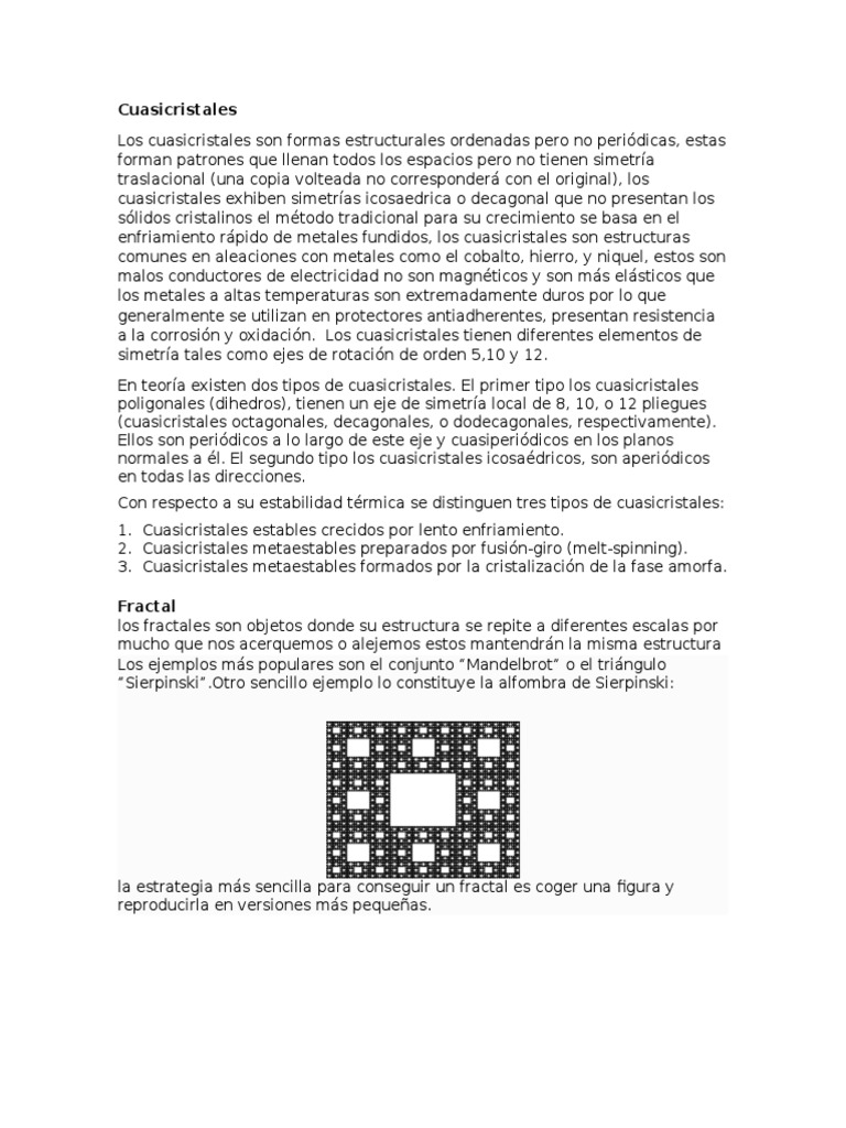 Los cuasicristales son formas estructurales ordenadas pero no peridicas, estas