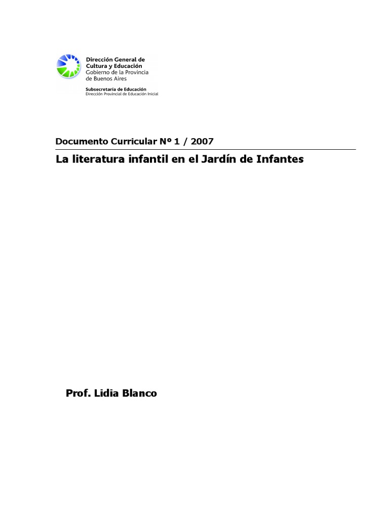 Blanco La Literatura Infantil en El Jardín de Infantes PDF