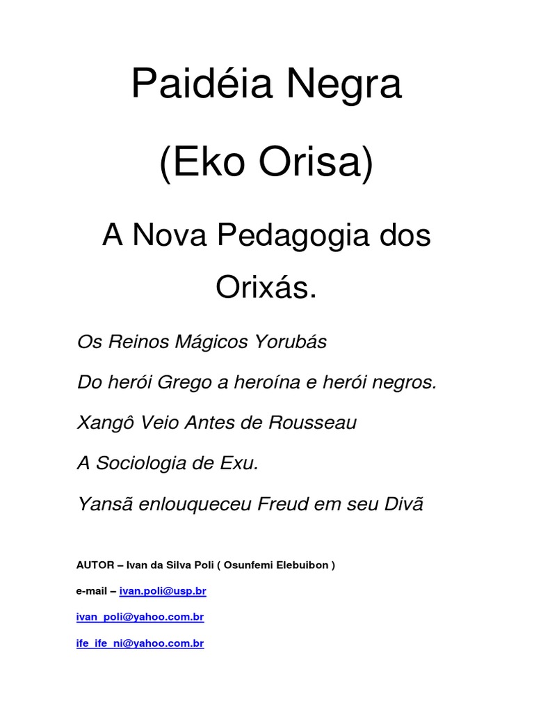______________- Pedagogia dos Orixs, So Paulo . Terceira Margem, 2015