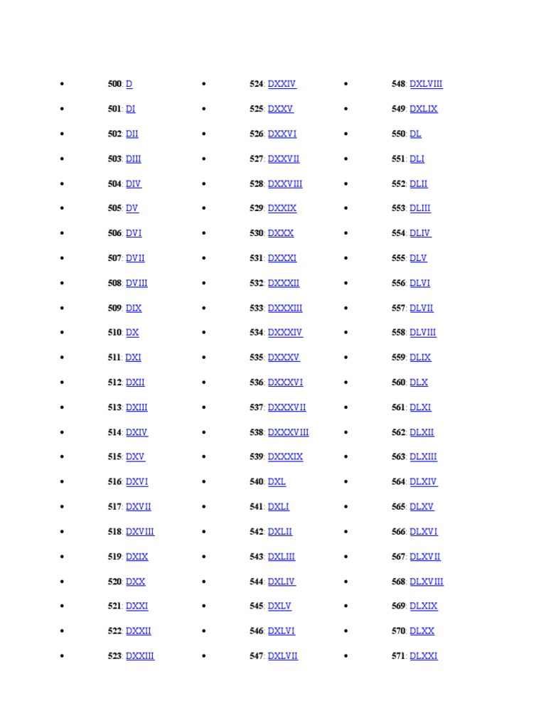 575: DLXXV 599: DXCIX 623: DCXXIII
