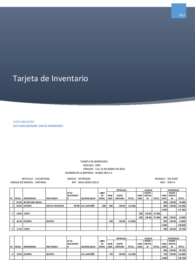 UNIDAD DE MEDIDA: UNITARIA NIT: 0614-20203-101-8 NRC: 5567-4