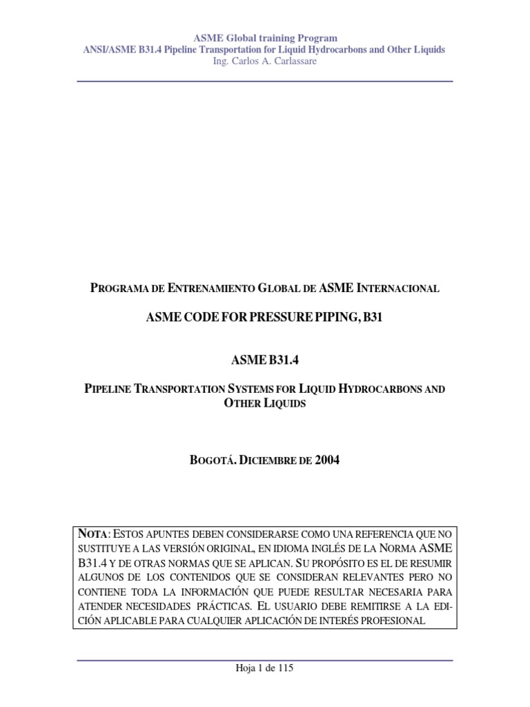 Este Cdigo es una seccin de las varias secciones del Cdigo ASME B31 para tuberas