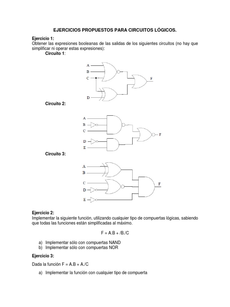 EJERCICIOS PROPUESTOS PARA CIRCUITOS LGICOS.