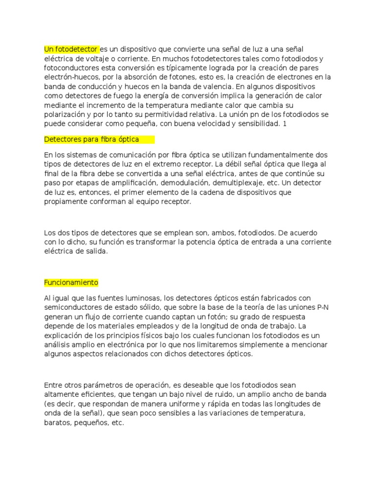 Un fotodetector es un dispositivo que convierte una seal de luz a una seal