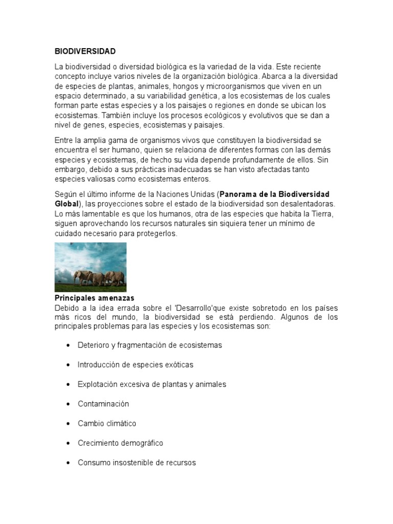 Segn el ltimo informe de la Naciones Unidas (Panorama de la Biodiversidad
