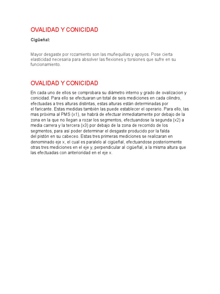 valores mximos permitidos por el fabricante, se obtienen a su vez la ovalizacion y