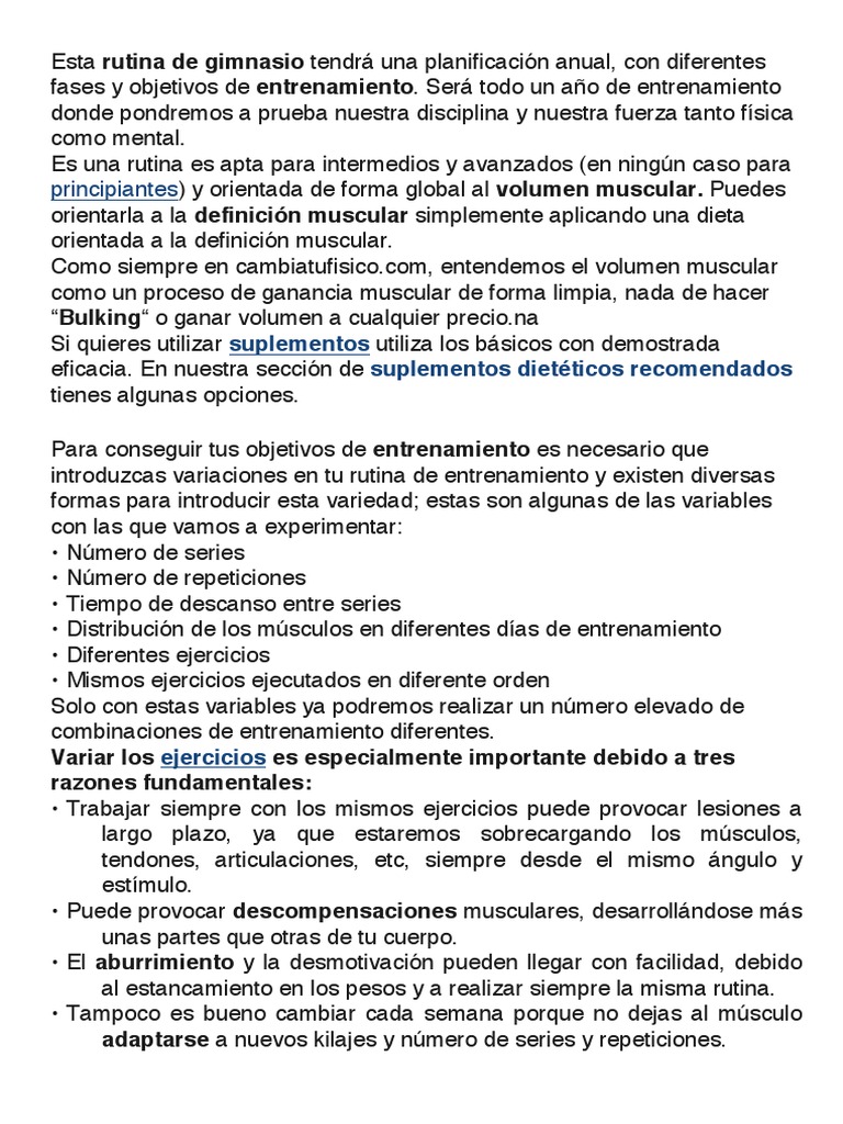 Esta rutina de gimnasio tendr una planificacin anual, con diferentes
