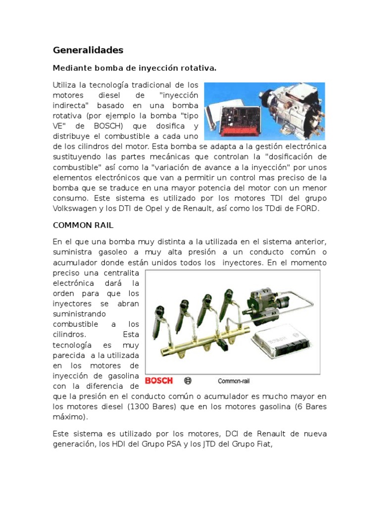 los motores diesel (1300 Bares) que en los motores gasolina (6 Bares