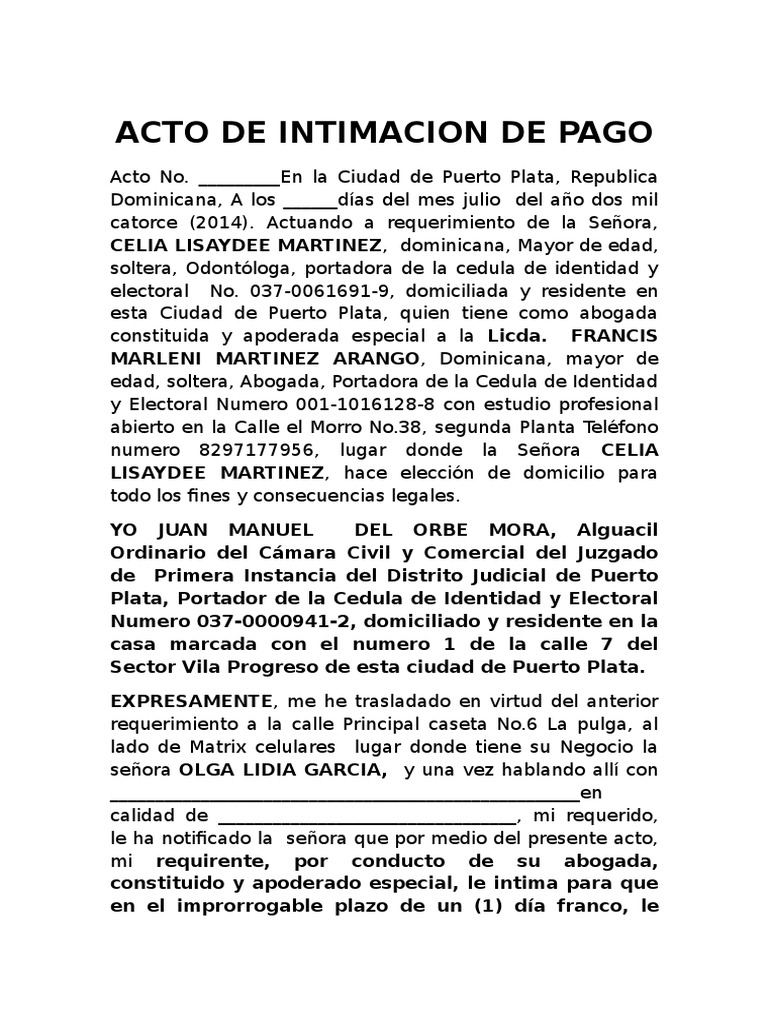 ACTO DE INTIMACION DE PAGO