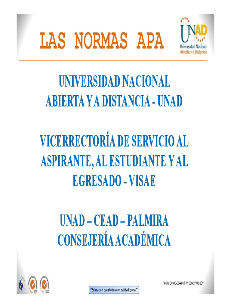 Universidad Nacional Abierta y a Distancia UNAD (s va en negrilla, no va en cursiva)