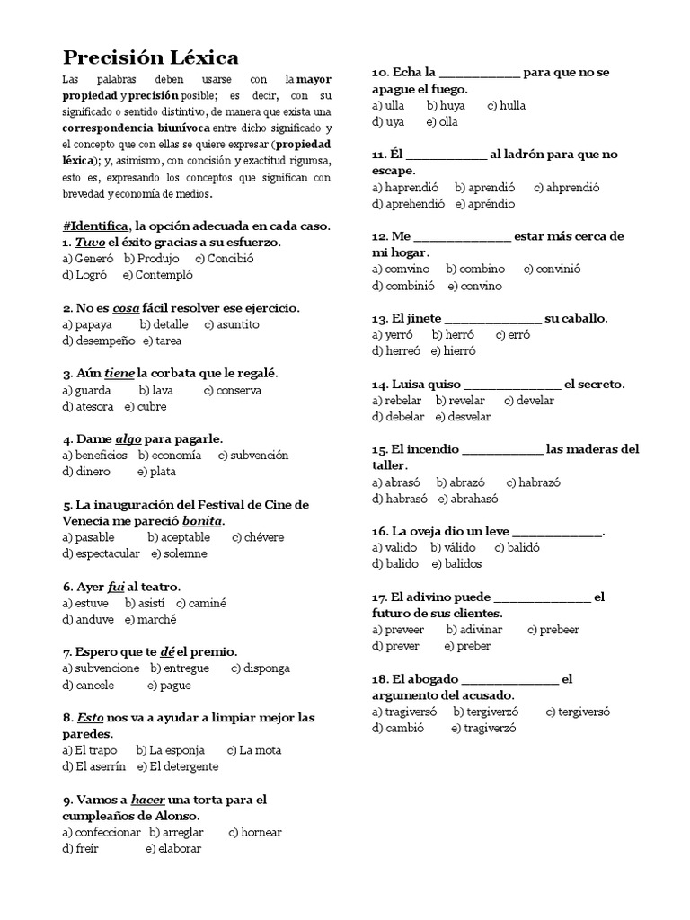 Ejercicios de Precisin lxica Ejercicios de Precisin lxica