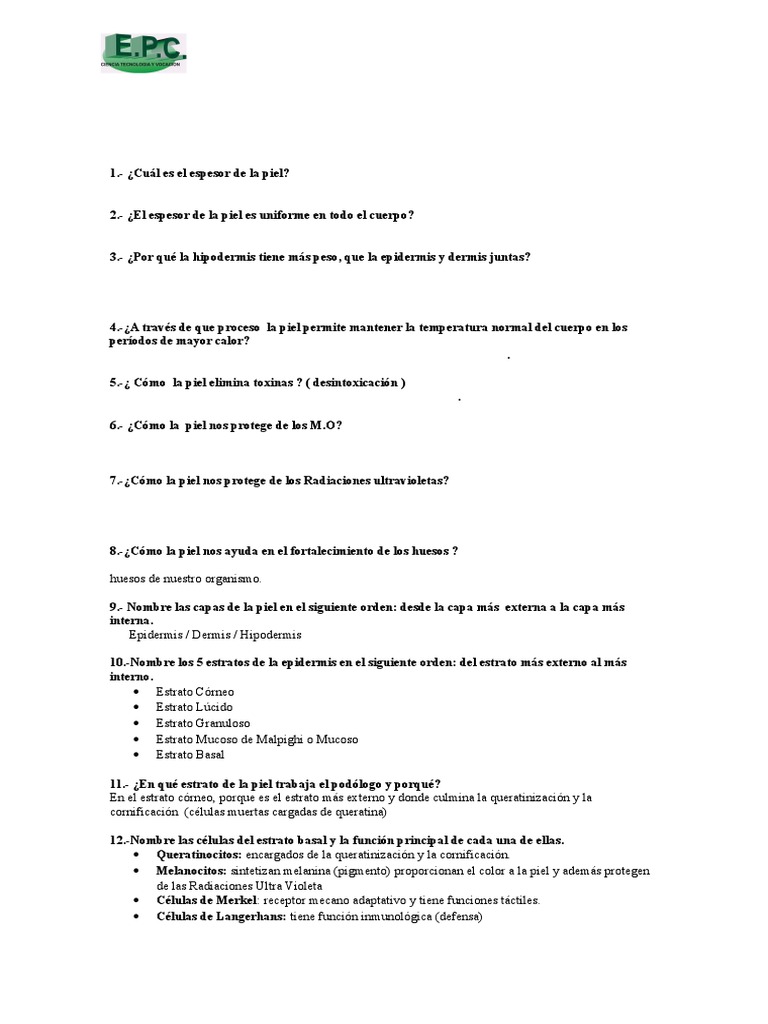 11.- En qu estrato de la piel trabaja el podlogo y porqu?