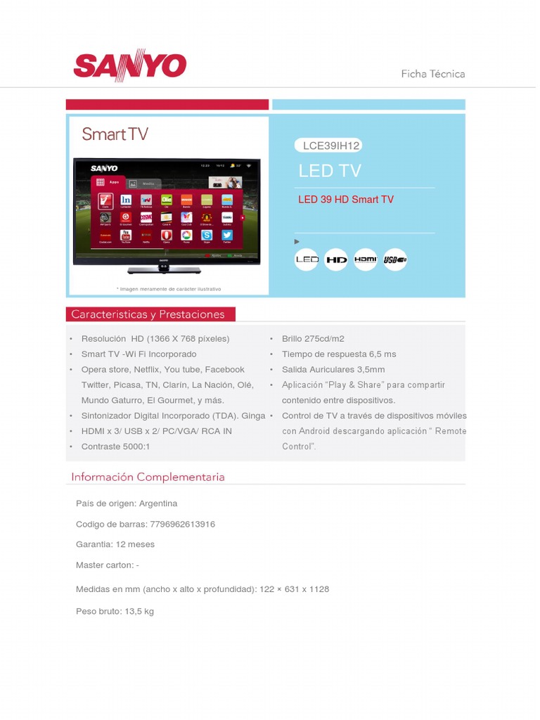 HDMI x 3/ USB x 2/ PC/VGA/ RCA IN con Android descargando aplicacin Remote