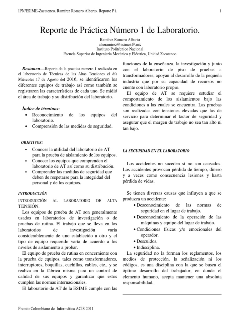 IPN/ESIME-Zacatenco. Ramrez Romero Alberto. Reporte P1. 2