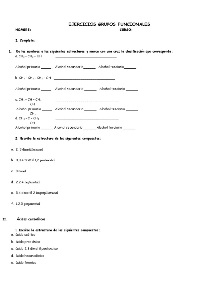 Alcohol primario _____ Alcohol secundario ______ Alcohol terciario ______