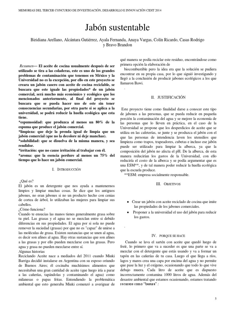 Universidad no es la excepcin, por ello en este proyecto se lleg a la conclusin de producir jabones ecolgicos a los que