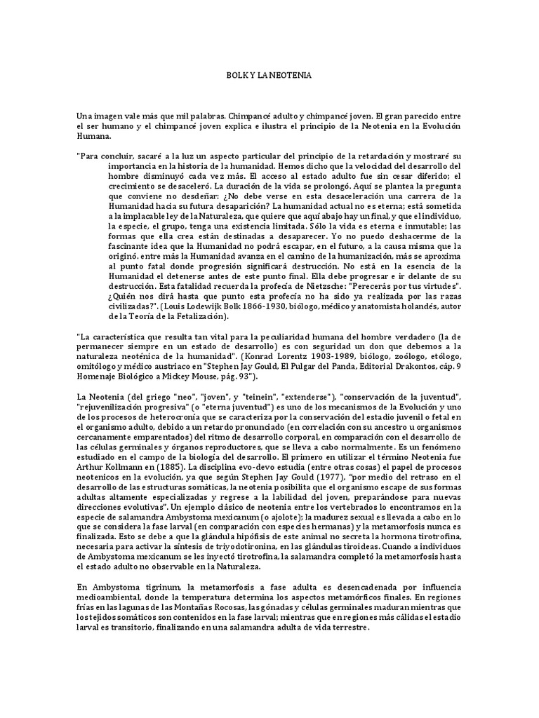 neotenicos en la evolucin, ya que segn Stephen Jay Gould (1977), por medio del retraso en el