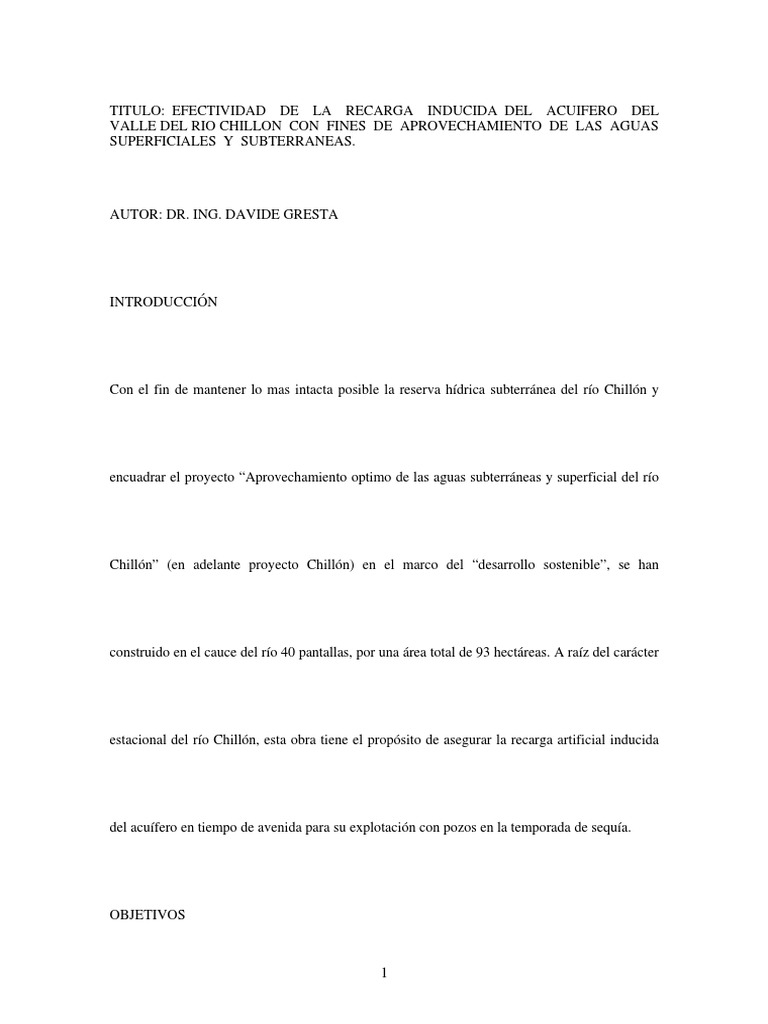 TITULO: EFECTIVIDAD DE LA RECARGA INDUCIDA DEL ACUIFERO DEL