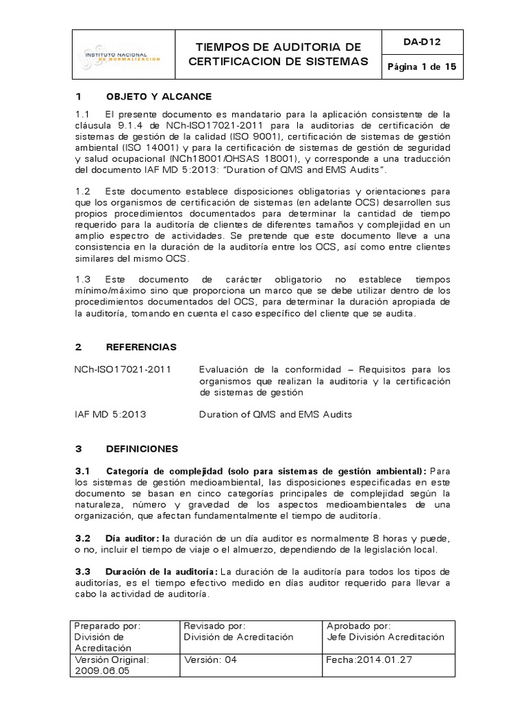 clusula 9.1.4 de NCh-ISO17021-2011 para la auditorias de certificacin de