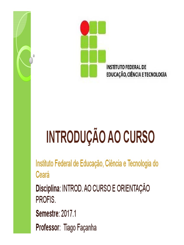 Disciplina: INTROD. AO CURSO E ORIENTAO