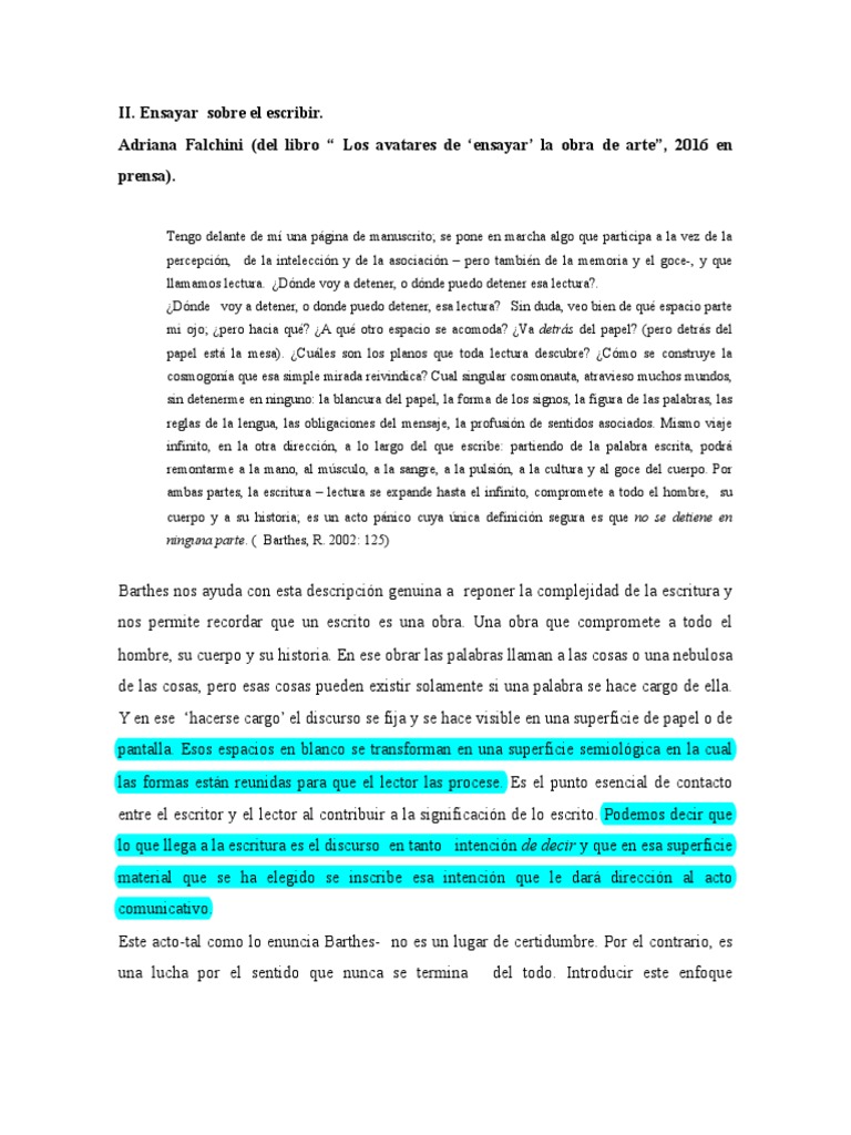 II. Ensayar sobre el escribir.