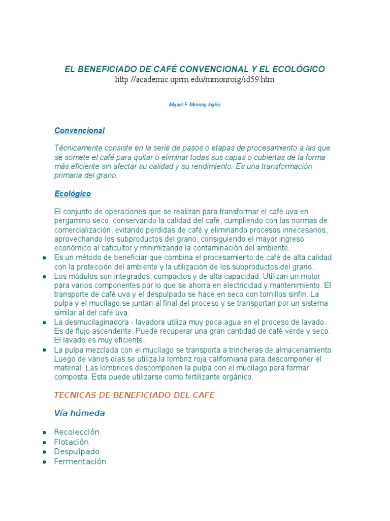 EL BENEFICIADO DE CAF CONVENCIONAL Y EL ECOLGICO