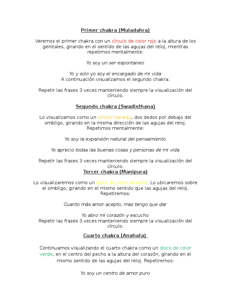 crculo girando del color adecuado, el mantra de cada chakra. Ver en la