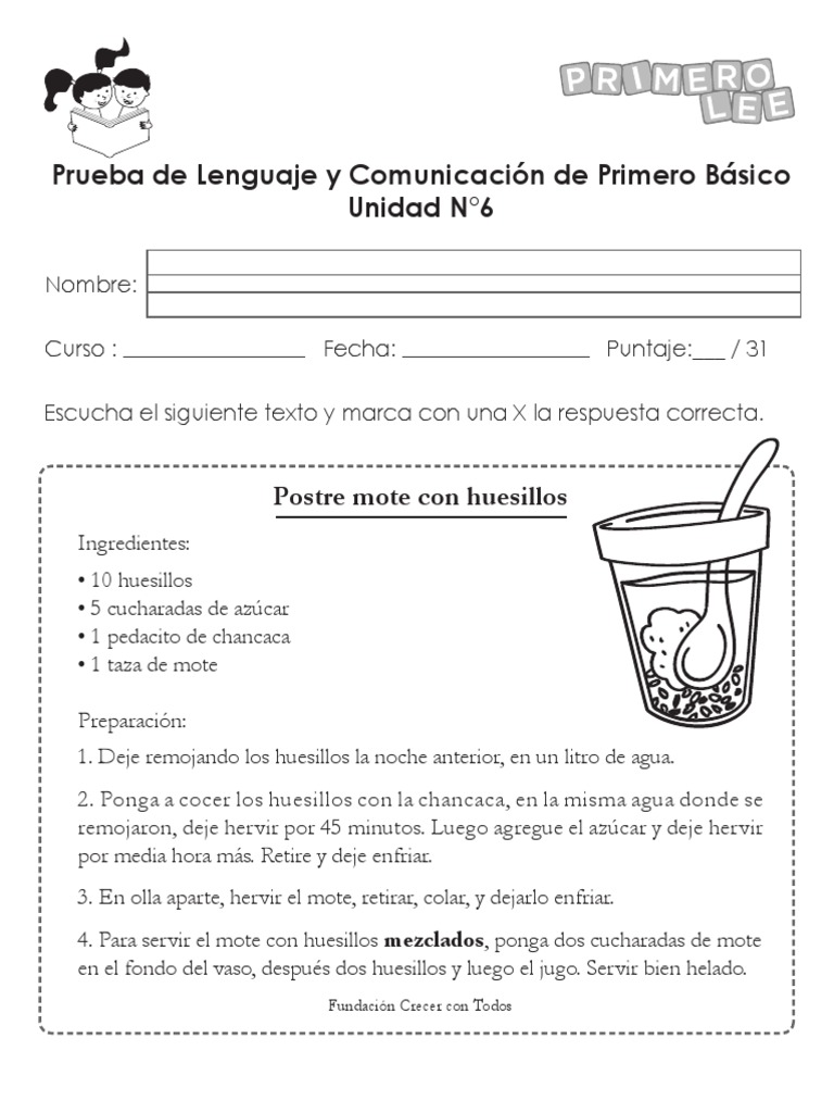 Prueba de Lenguaje y Comunicacin de Primero Bsico