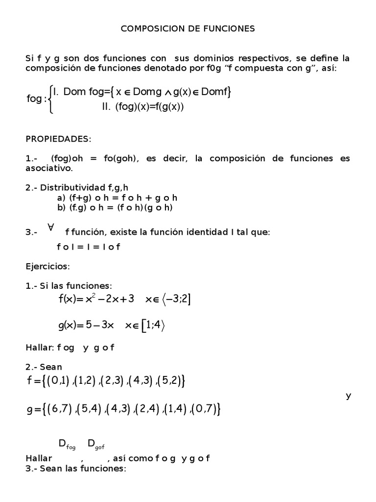 Si f y g son dos funciones con sus dominios respectivos, se define la