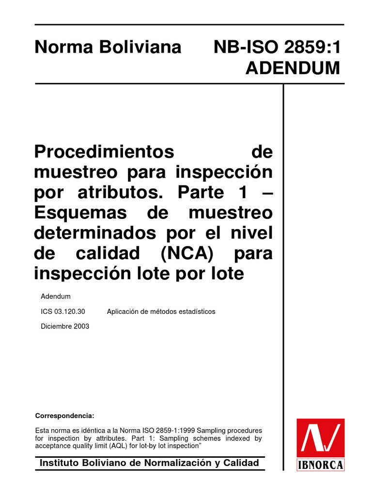 Esta norma es idntica a la Norma ISO 2859-1:1999 Sampling procedures