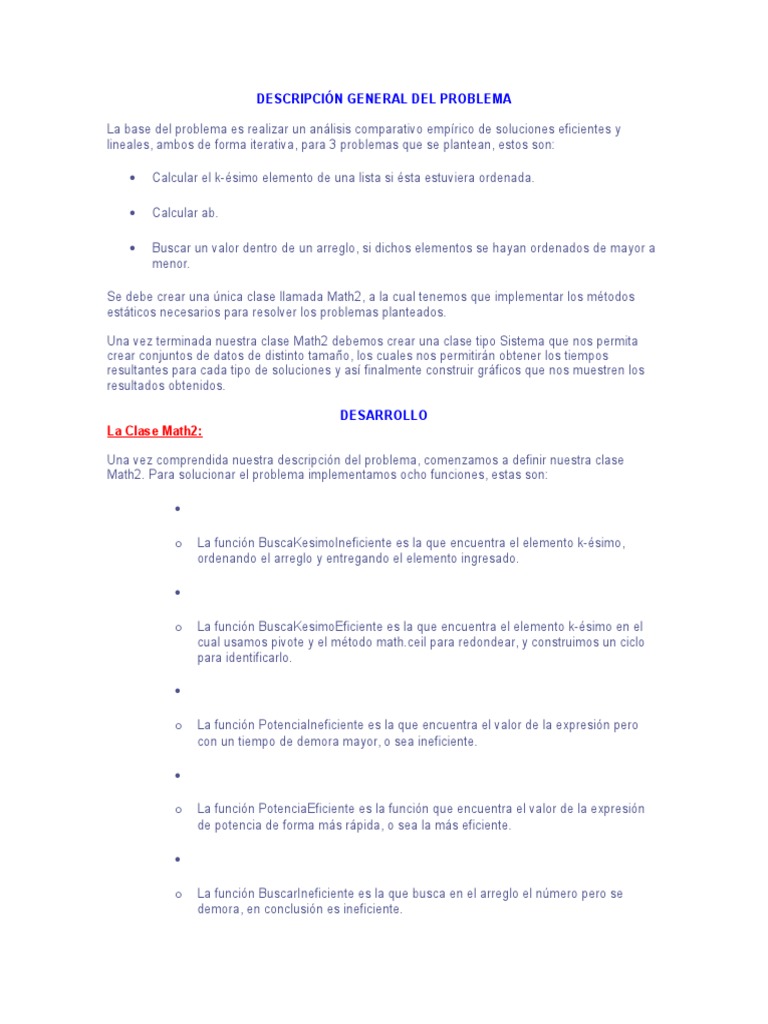 La base del problema es realizar un anlisis comparativo emprico de soluciones eficientes y