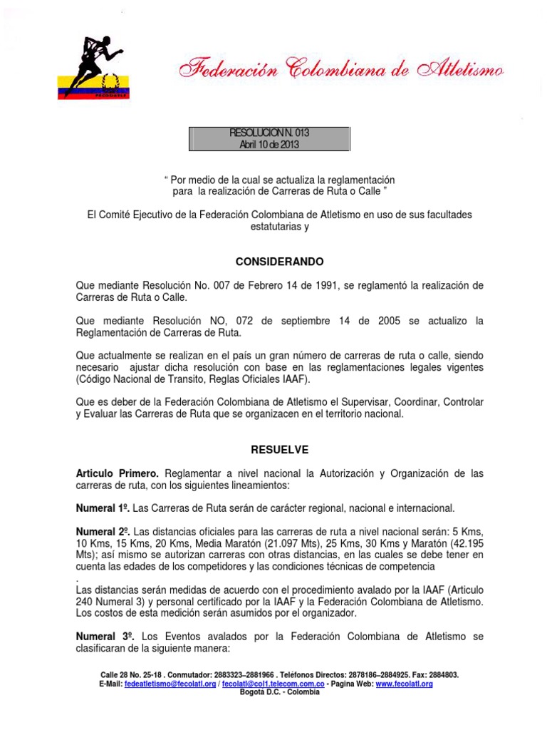 teniendo en cuenta las regulaciones de la Federacin Colombiana de Atletismo y de la IAAF