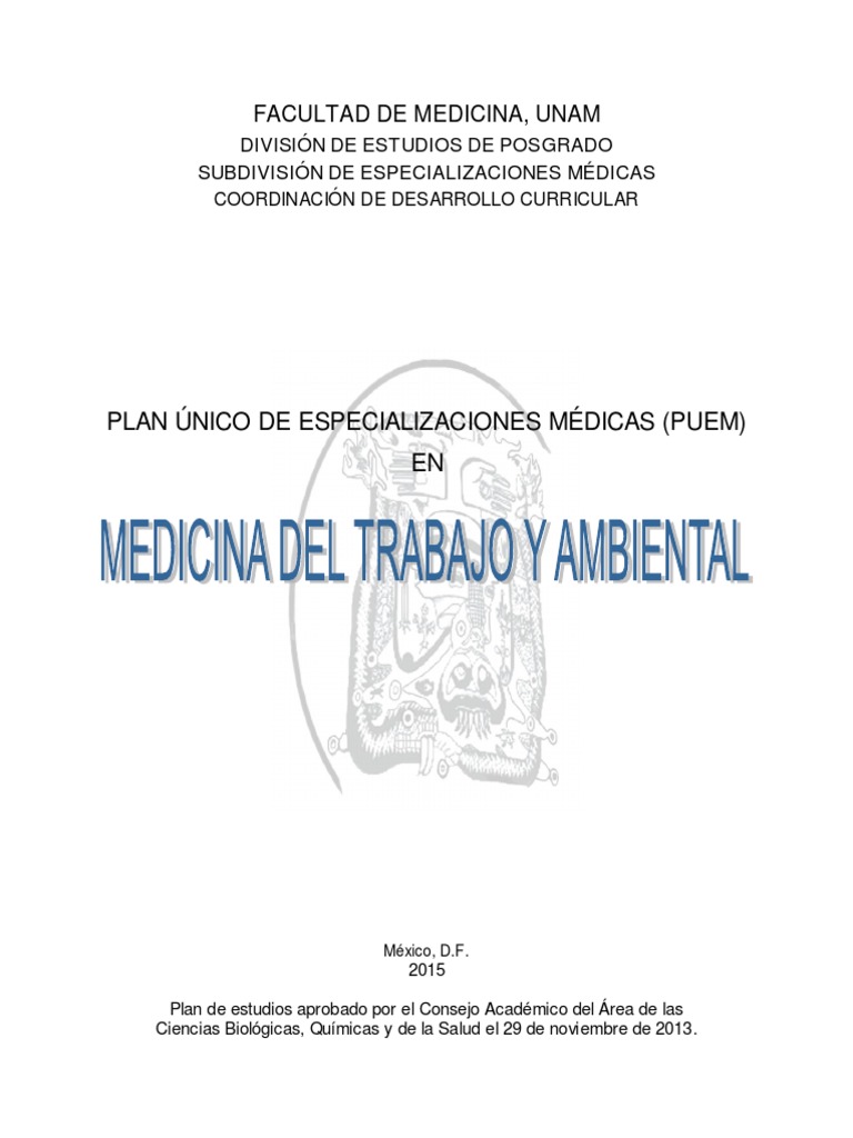 Plan nico de Especializ aciones Mdicas Medicina del trabajo y ambiental