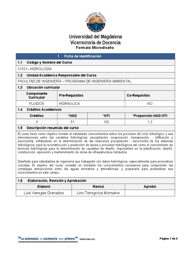 Para el desarrollo de la asignatura de hidrologa se requiere de la aplicacin de mtodos, tcnicas y