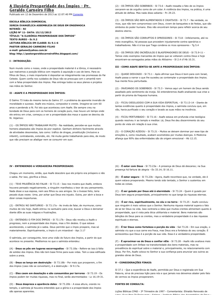 faam uma breve reflexo sobre a inquietude de Asafe diante da prosperidade os
