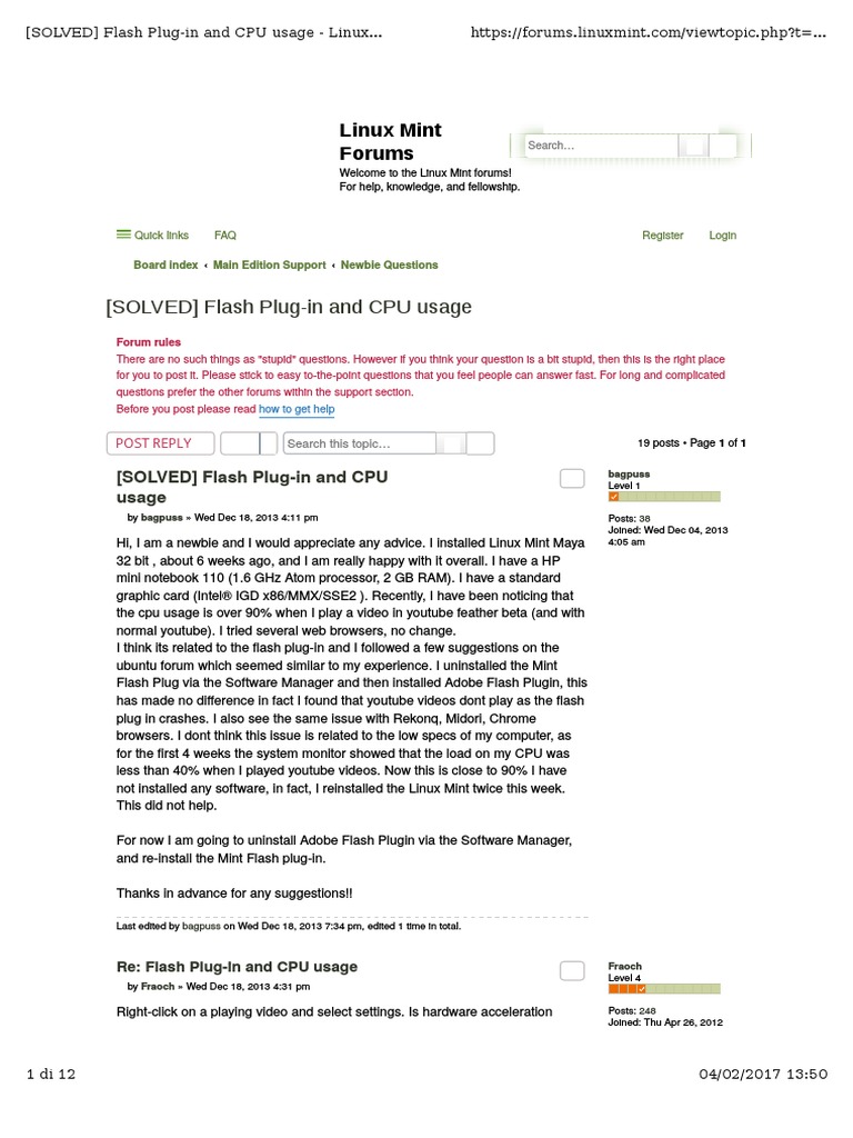 [SOLVED] Flash Plug-in and CPU usage - Linux... https://forums.linuxmint.com/viewtopic.php?t=...