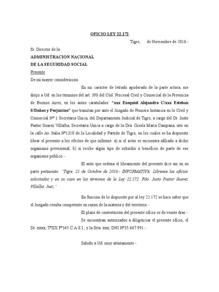 solicitados y en su caso en los trminos de la Ley 22.172. Fdo. Justo Pastor Suarez