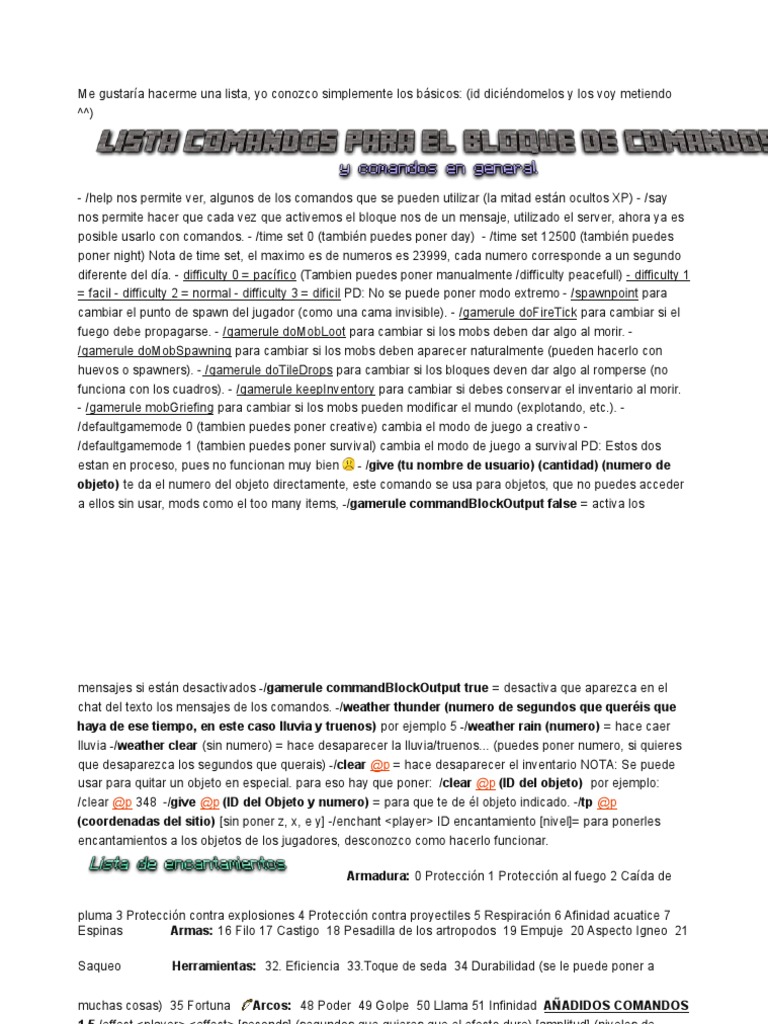 - /help nos permite ver, algunos de los comandos que se pueden utilizar (la mitad estn ocultos XP) - /say