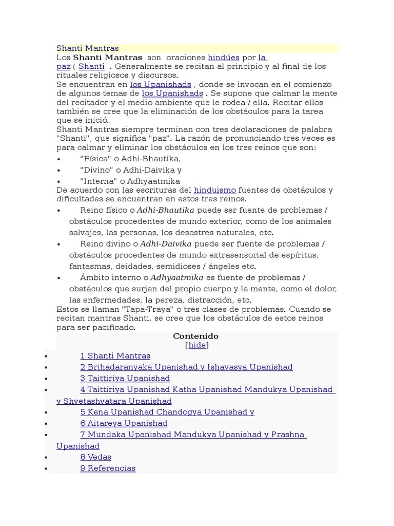 paz ( Shanti . Generalmente se recitan al principio y al final de los