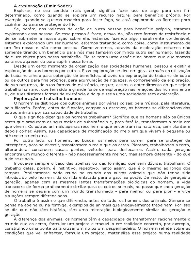 Marx, A transio no Brasil, Que Brasil este?,] Referncia: SADER, Emir. A explorao. In: SADER, Emir (Org.)