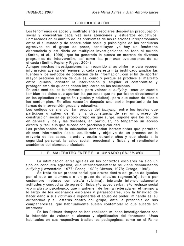 Ortega, 1998; Rigby, 1997a) y locales (Cerezo y Esteban, 1992; Avils,