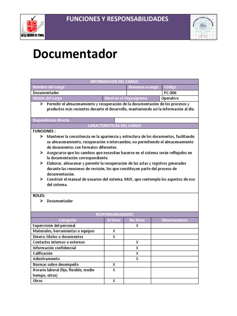 informacin. El documentador debe de todos los documentos generados durante
