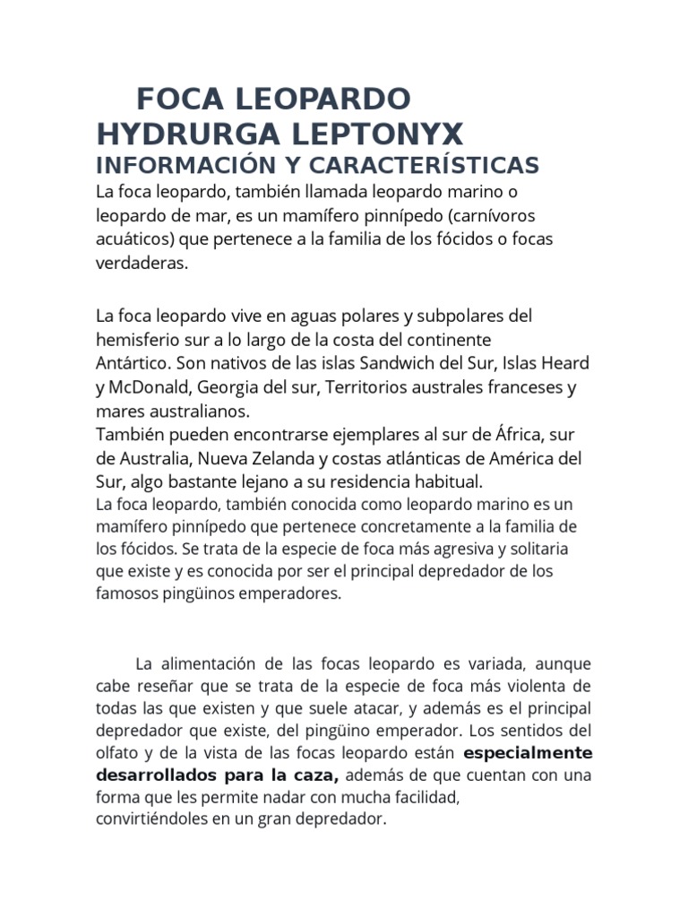 leopardo de mar, es un mamfero pinnpedo (carnvoros