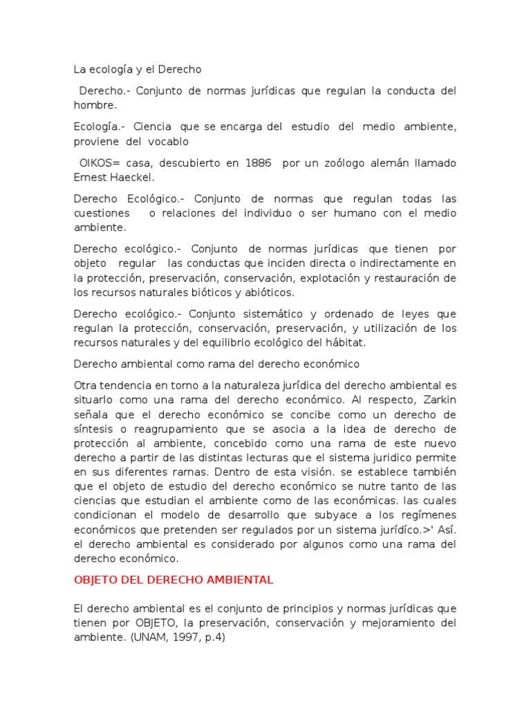 Derecho Ecológico.- Conjunto de normas que regulan todas las